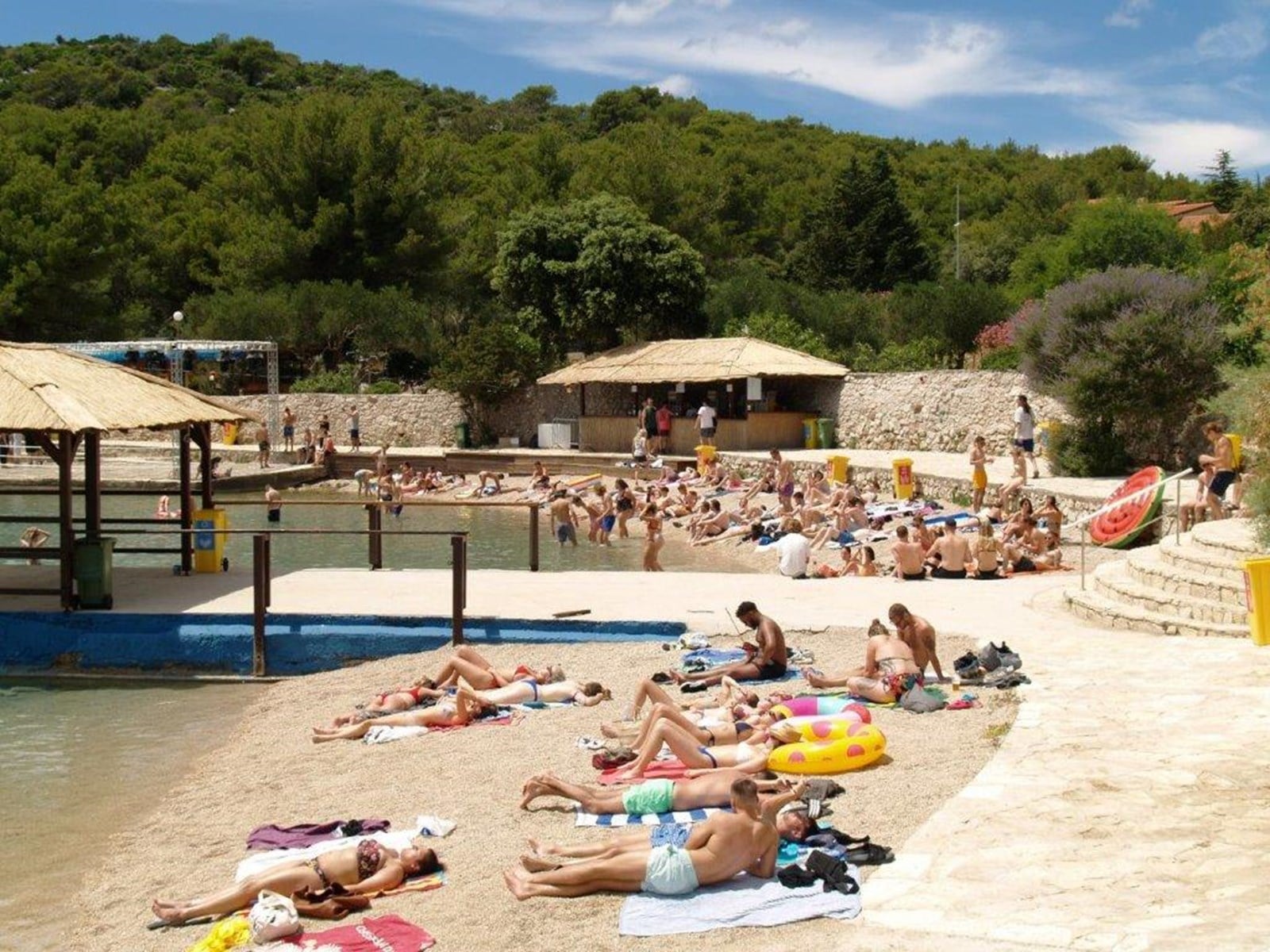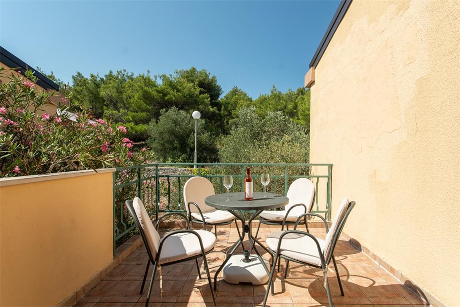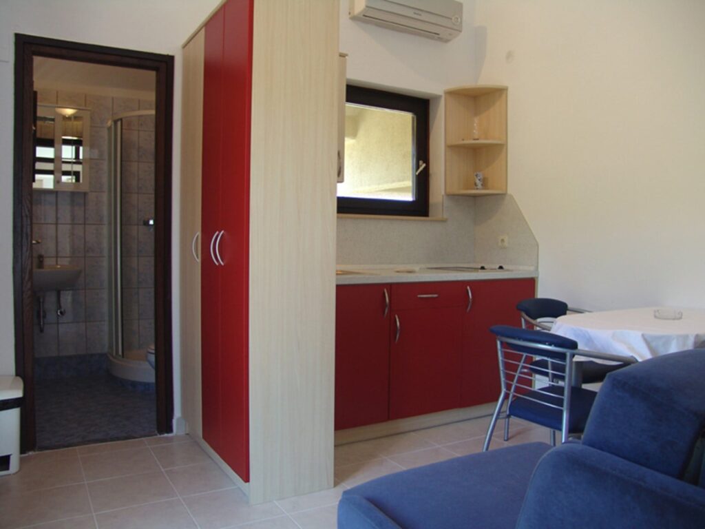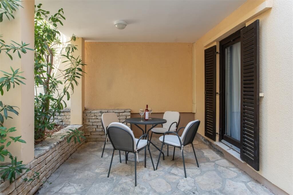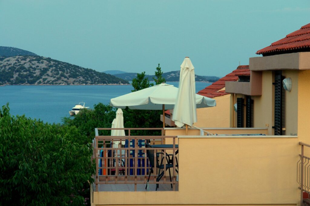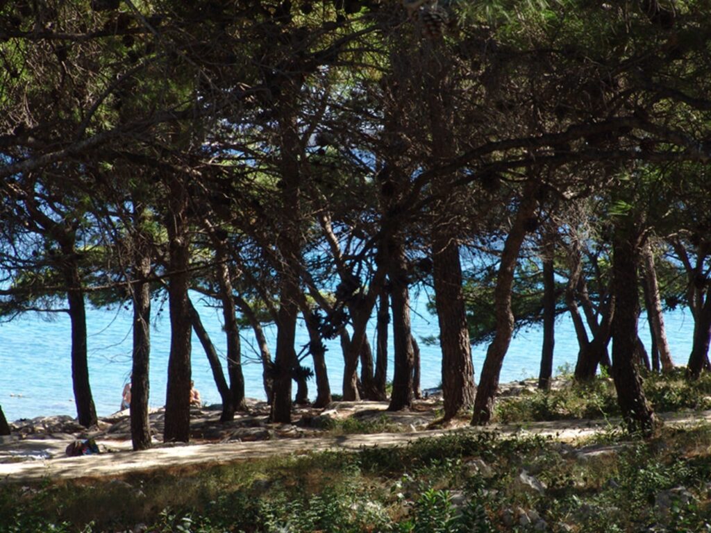 Die Appartementanlage Hostin befindet sich direkt am Meer, umgeben von Feigen- und Olivenbäumen, Kiefernwald und mediterranem Gewächs.